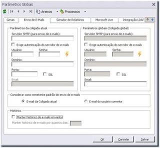 Em seguida confira se as informações nos Parâmetros Globais estão cadastradas conforme a figura ao lado.