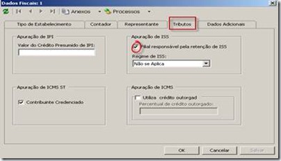 Opção “Filial Responsável pela Retenção” esta marcada, acesse Cadastro | Filial | Anexos | Dados Fiscais | Aba Tributos.