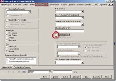 Acesse Cadastro | Natureza de Operação | Cadastro de Natureza de Operação | Aba Outros Dados